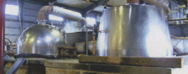 - 熟成したモロミを蒸留します。泡盛で使用する蒸留機は単式蒸留機を用います。